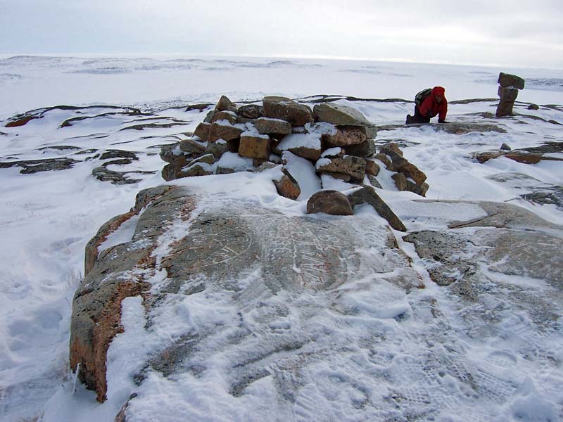Leaving the airport and walking on the well-worn trail that follows the southern shoreline of Repulse Bay, the visitor will come upon the Naujan Thule Site. Allow lots of time, since it's a five kilometer trek.